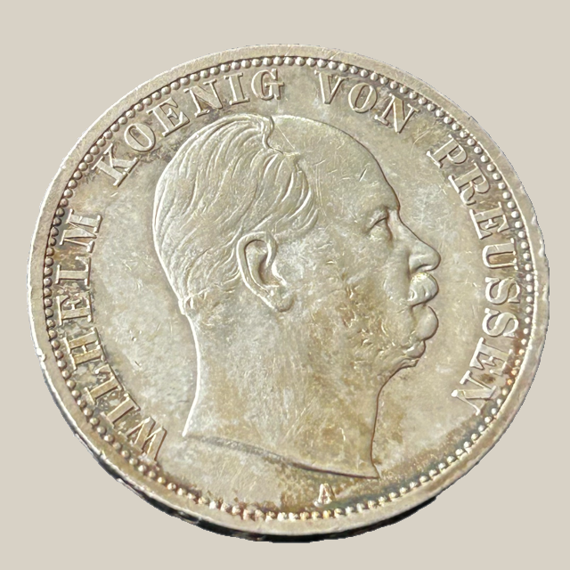 Este 1 Vereinsthaler de 1871 é uma peça de grande significado histórico. Embora tecnicamente seja um Vereinsthaler (padrão de prata anterior ao Mark), o ano de 1871 é o ano da Unificação Alemã, quando a Prússia, liderada pelo Rei Guilherme I (que se tornou Kaiser Wilhelm I), fundou o Império Alemão (Deutsches Reich).