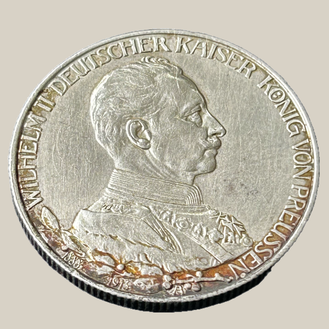Esta moeda de 2 Marks de 1913 foi emitida durante os anos finais do Império Alemão, sob o reinado de Guilherme II. É uma peça que antecede diretamente a Primeira Guerra Mundial (1914–1918), um dos conflitos mais impactantes da história mundial.