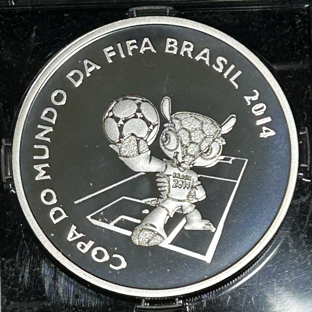 Esta moeda comemorativa foi emitida em 2014 por ocasião da segunda vez que o Brasil sediou a Copa do Mundo FIFA no Brasil, marcando o retorno da competição ao país como sede após a histórica edição de 1950.